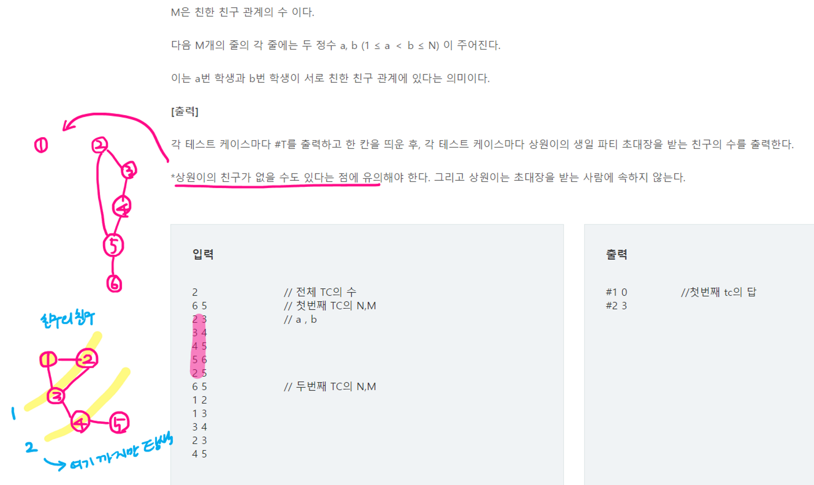 - 상원이가 생일파티에 자신과 친한 친구와 친한친구의 친한친구에게 초대장을 주는 상황