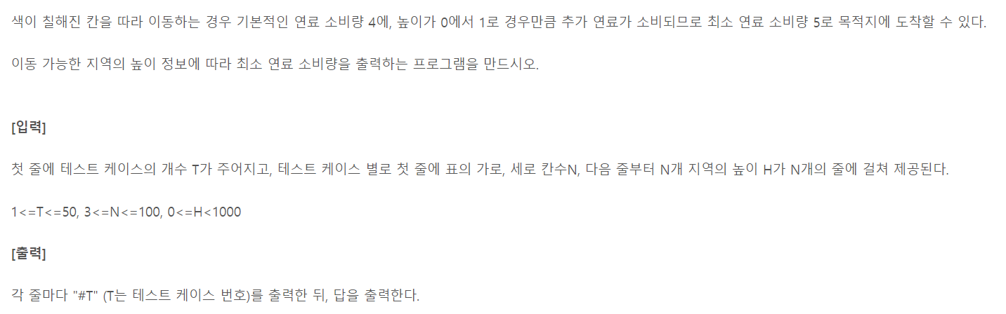 - 문제에서는 현재좌표의 높이와 새로운 좌표의 높이 차이가 있다면 ( 새로운 좌표가 높다면) 그 높이 만큼을 가중치로 계산함